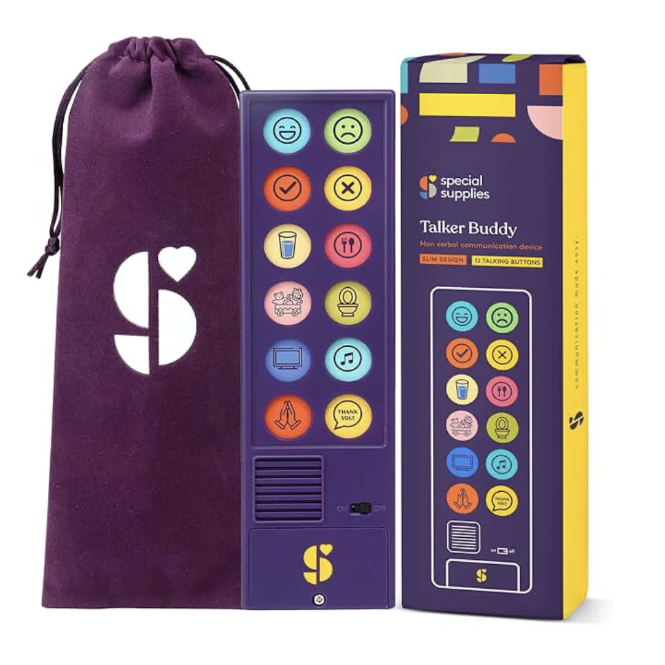 Special Supplies AAC Communication Device for Speech Therapy, Talker Buddy Communication Device for Non Verbal Kids & Adults, Autism Talking Aids for Home or School, Communication Device W/Travel Bag. This retails around $20! It is an inexpensive way to get started with AAC and to have a backup in case of emergencies.